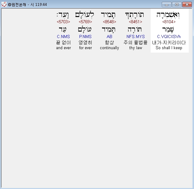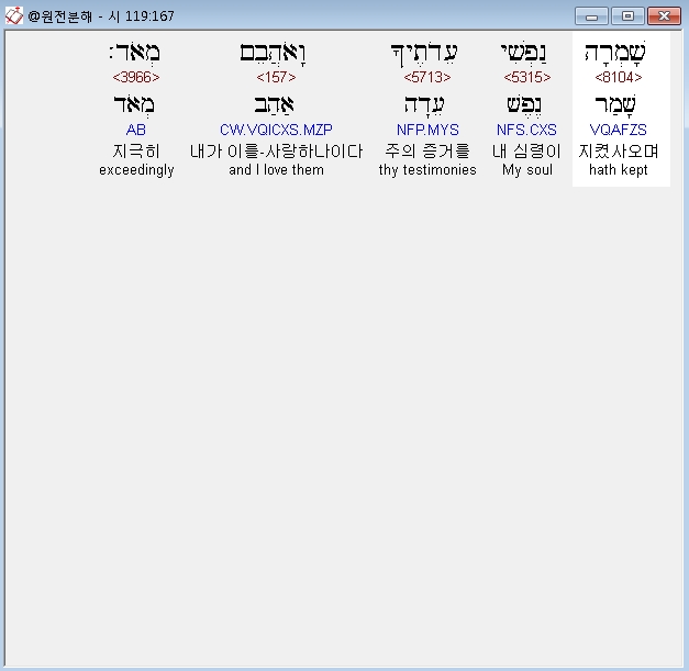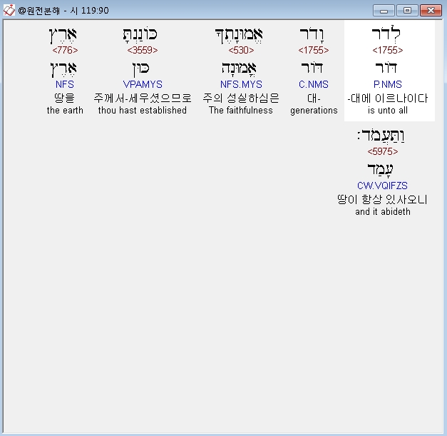 | 히브리어 시편 117편 전체 원어 원문 성경 공부 주석 강해 설교 해설 해석 (0) | 2020.10.14 |