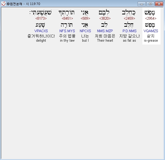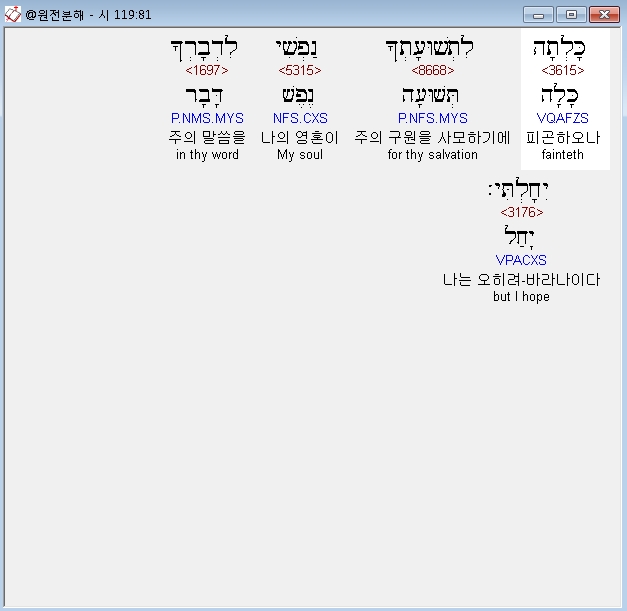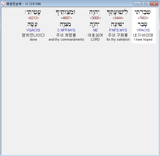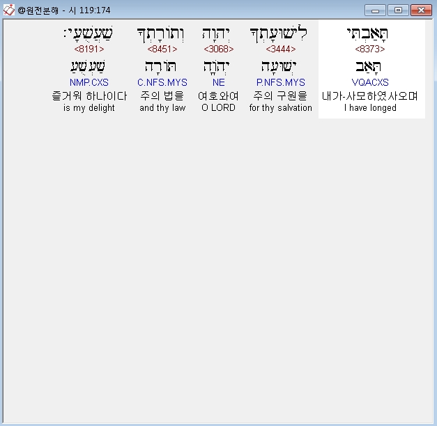히브리어구약BHS,174 תָּאַבְתִּי לִישׁוּעָתְךָ יְהוָה וְתֹורָתְךָ שַׁעֲשֻׁעָי׃