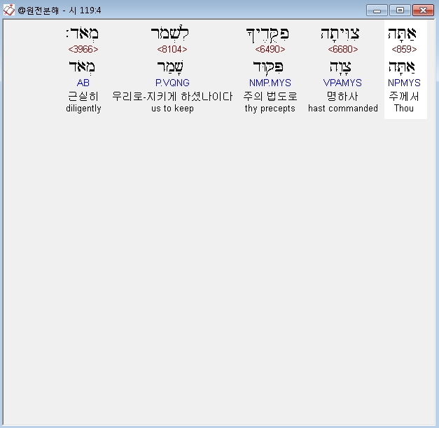 히브리어구약BHS,4 אַתָּה צִוִּיתָה פִקֻּדֶיךָ לִשְׁמֹר מְאֹד׃