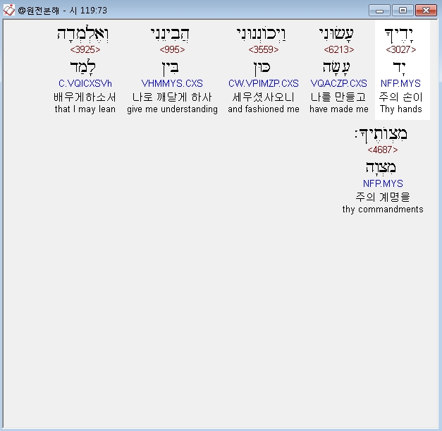 히브리어구약BHS,173 תְּהִי־יָדְךָ לְעָזְרֵנִי כִּי פִקּוּדֶיךָ בָחָרְתִּי׃