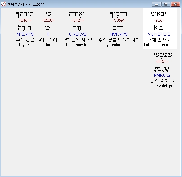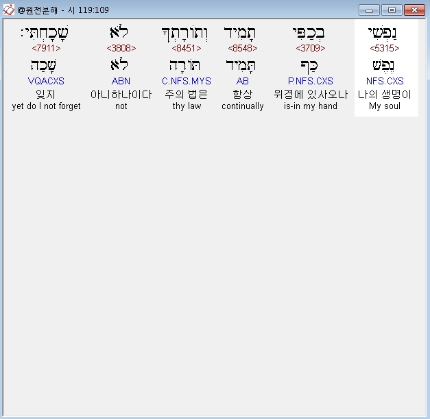 히브리어구약BHS,175 תְּחִי־נַפְשִׁי וּתְהַלְלֶךָּ וּמִשְׁפָּטֶךָ יַעֲזְרֻנִי׃