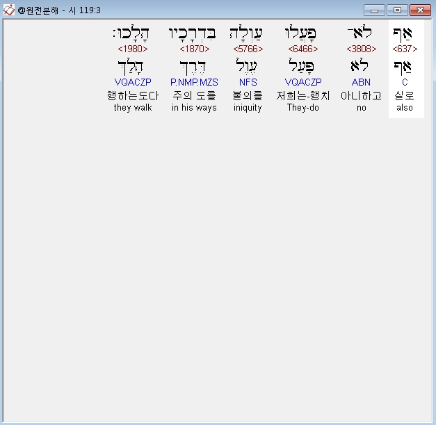 히브리어구약BHS,3 אַף לֹא־פָעֲלוּ עַוְלָה בִּדְרָכָיו הָלָכוּ׃