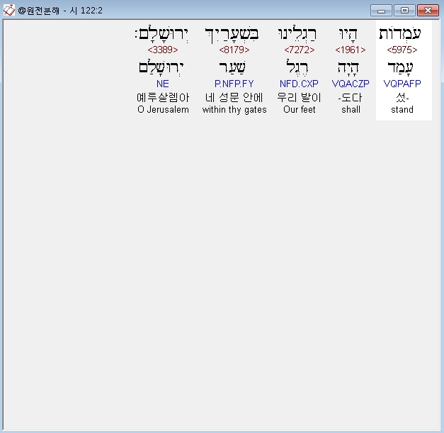 히브리어구약BHS,2 עֹמְדֹות הָיוּ רַגְלֵינוּ בִּשְׁעָרַיִךְ יְרוּשָׁלִָם׃