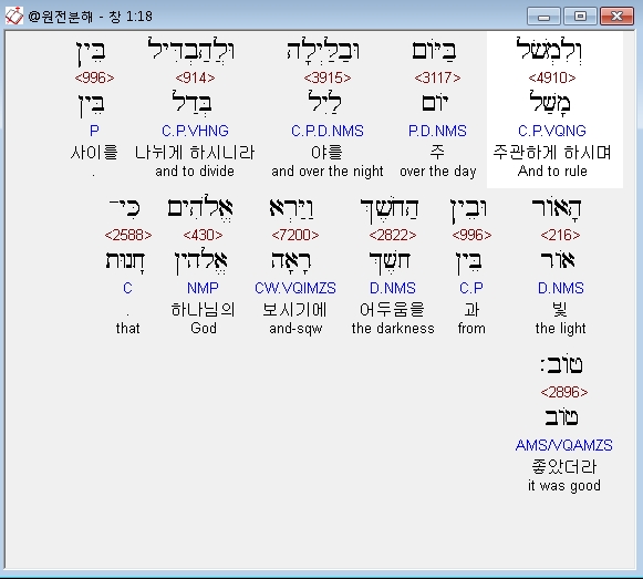 와야르 엘로힘 엩 콜 아쉘 아사 웨힌네 토브 메오드 와예히 에레브 와예히 보켈 욤 핫쉿쉬