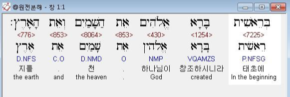 창세기 1장 1절에서 '태초에'는 '언제(when)'를, '하나님이'는 '누가(who)' 를, ‘천지를’은 ‘무엇(what)'을, 끝으로 ‘창조하시니라’는 ‘어떻게(how)'를 보여 준다.