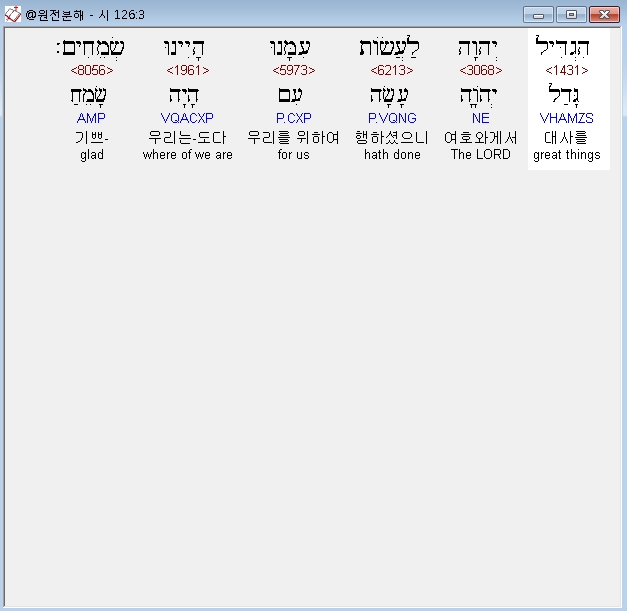 히브리어구약BHS,3 הִגְדִּיל יְהוָה לַעֲשֹׂות עִמָּנוּ הָיִינוּ שְׂמֵחִים׃