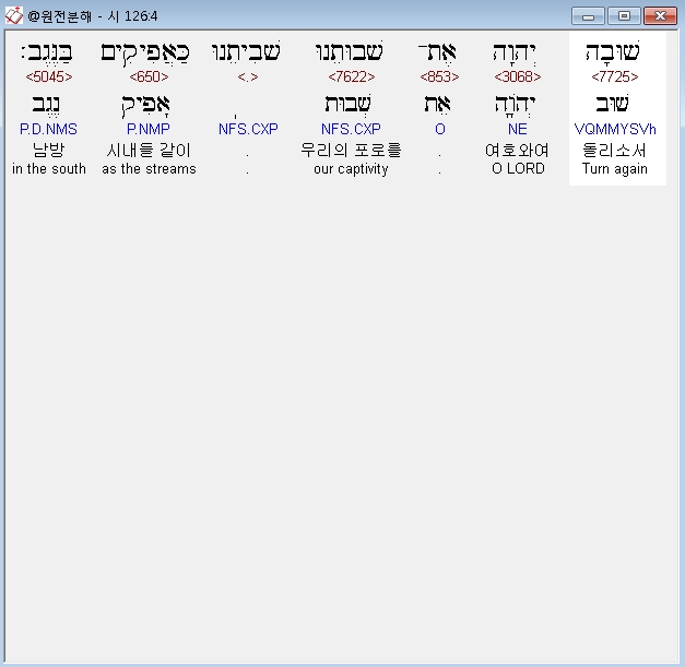 영어NASB,4 Restore our captivity, O LORD, As the streams in the South.