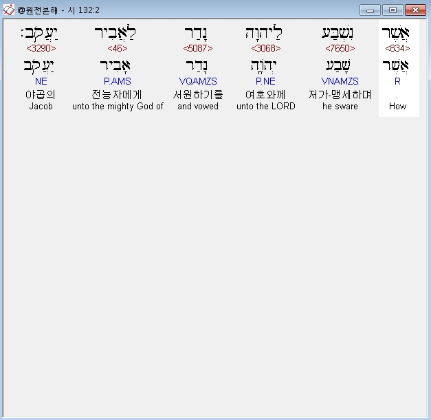 히브리어구약BHS,2 אֲשֶׁר נִשְׁבַּע לַיהוָה נָדַר לַאֲבִיר יַעֲקֹב׃