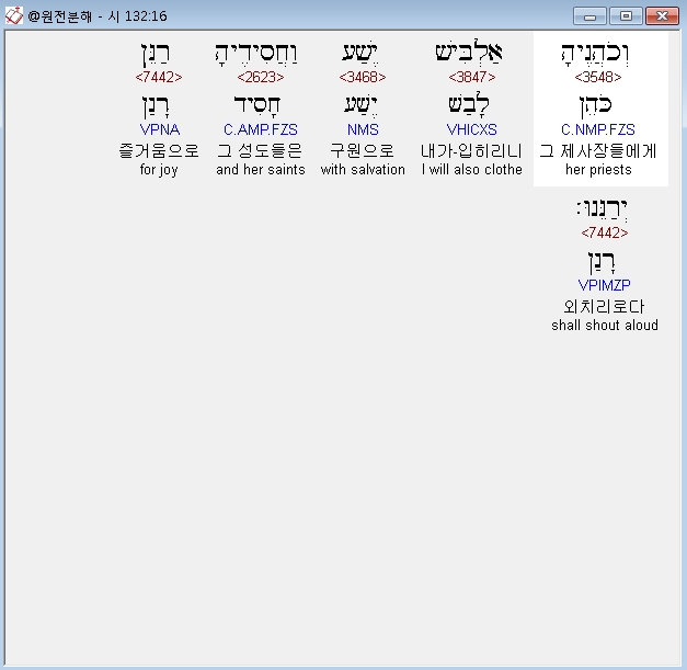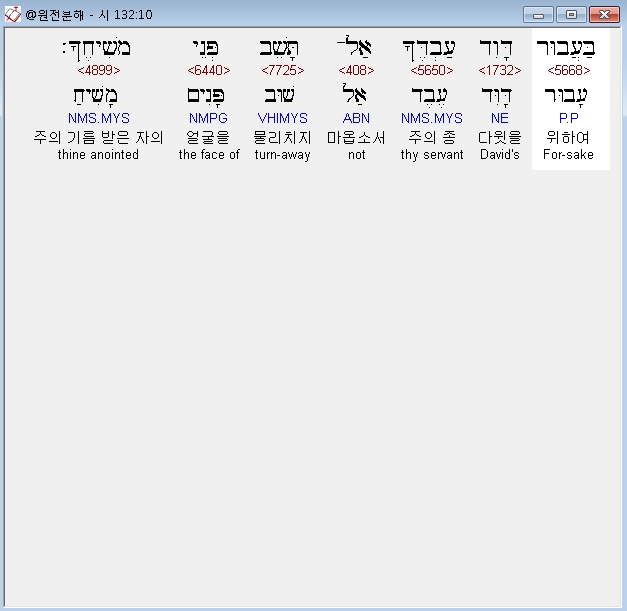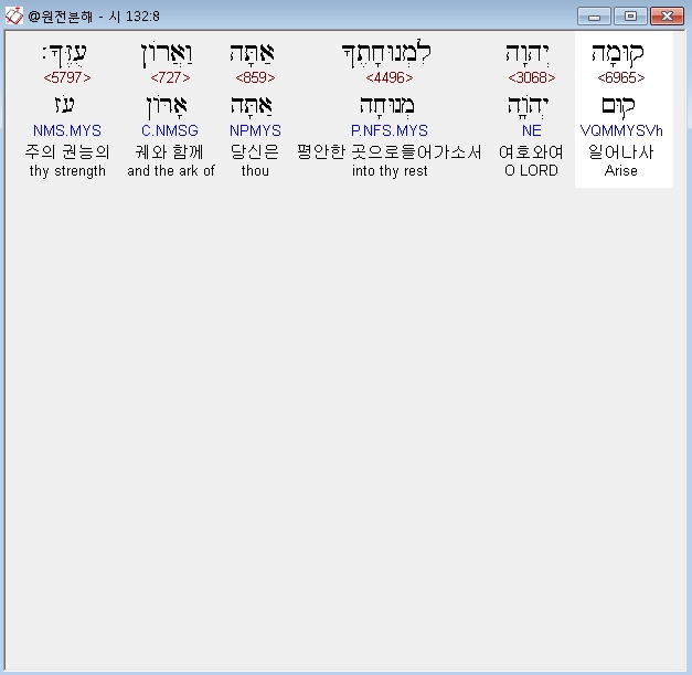 | 히브리어 시편 133편 전체 원어 원문 성경 공부 주석 강해 설교 해설 해석 (0) | 2020.10.14 |