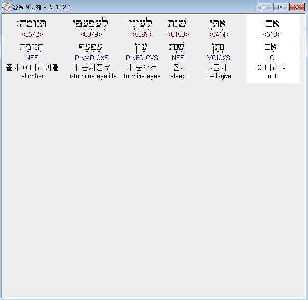 히브리어구약BHS,4 אִם־אֶתֵּן שְׁנַת לְעֵינָי לְעַפְעַפַּי תְּנוּמָה׃