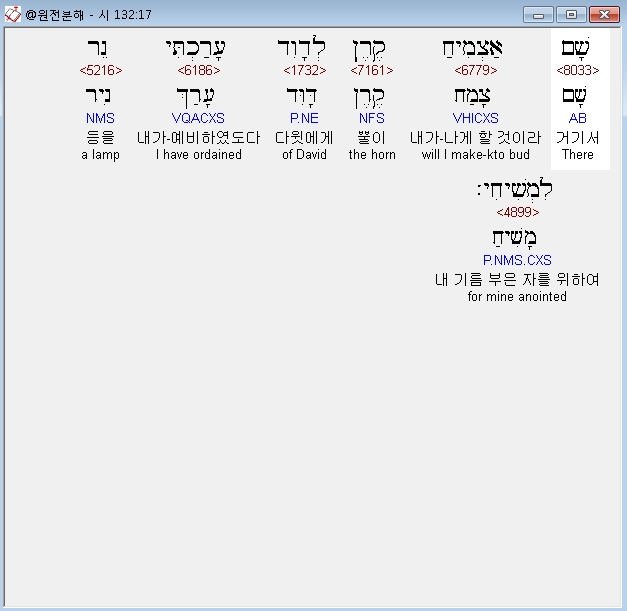 히브리어구약BHS,17 שָׁם אַצְמִיחַ קֶרֶן לְדָוִד עָרַכְתִּי נֵר לִמְשִׁיחִי׃