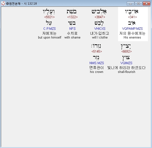 히브리어구약BHS,18 אֹויְבָיו אַלְבִּישׁ בֹּשֶׁת וְעָלָיו יָצִיץ נִזְרֹו׃