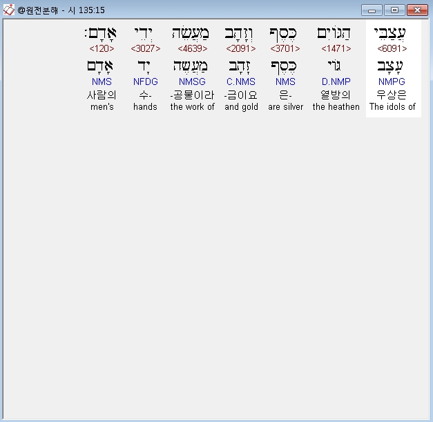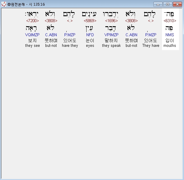 히브리어구약BHS,16 פֶּה־לָהֶם וְלֹא יְדַבֵּרוּ עֵינַיִם לָהֶם וְלֹא יִרְאוּ׃