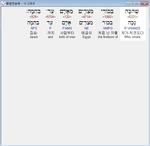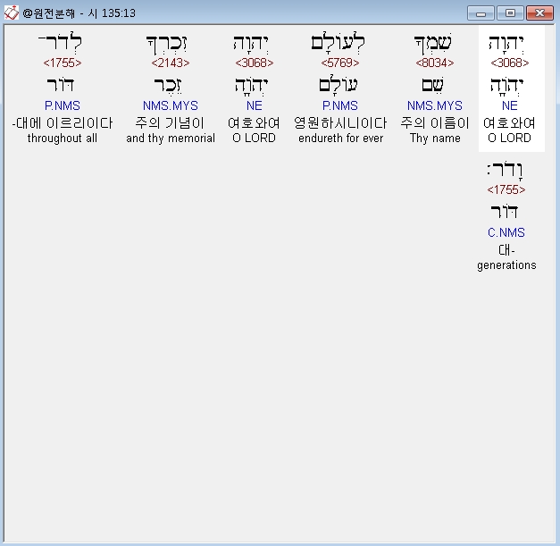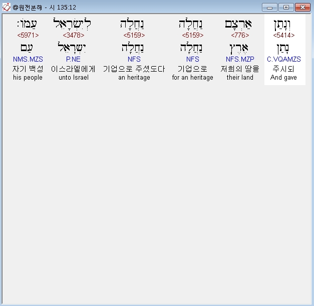 | 히브리어 시편 136편 전체 원어 원문 성경 공부 주석 강해 설교 해설 해석 (1) | 2020.10.14 |