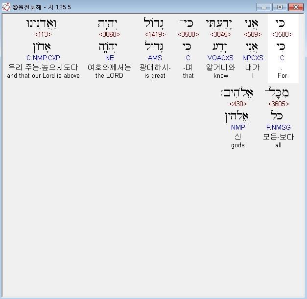 히브리어구약BHS,5 כִּי אֲנִי יָדַעְתִּי כִּי־גָדֹול יְהוָה וַאֲדֹנֵינוּ מִכָּל־אֱלֹהִים׃