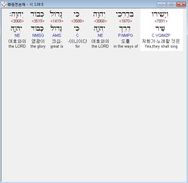 히브리어구약BHS,5 וְיָשִׁירוּ בְּדַרְכֵי יְהוָה כִּי גָדֹול כְּבֹוד יְהוָה׃