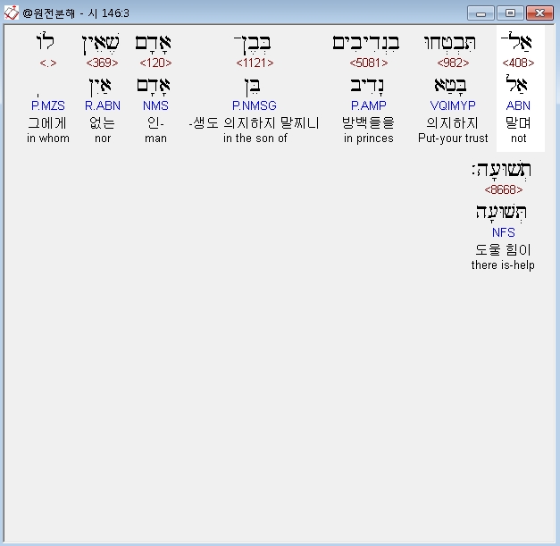 히브리어구약BHS,3 אַל־תִּבְטְחוּ בִנְדִיבִים בְּבֶן־אָדָם שֶׁאֵין לֹו תְשׁוּעָה׃