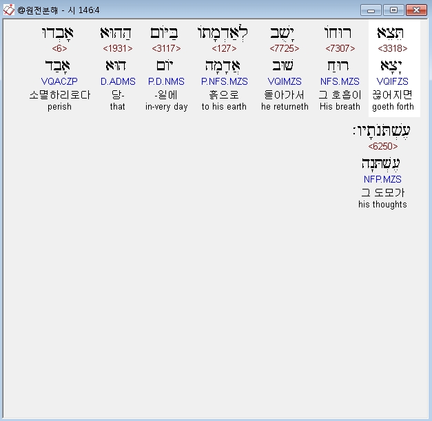 | 히브리어 시편 148편 전체 원어 원문 성경 공부 주석 강해 설교 해설 해석 (0) | 2020.10.15 |
