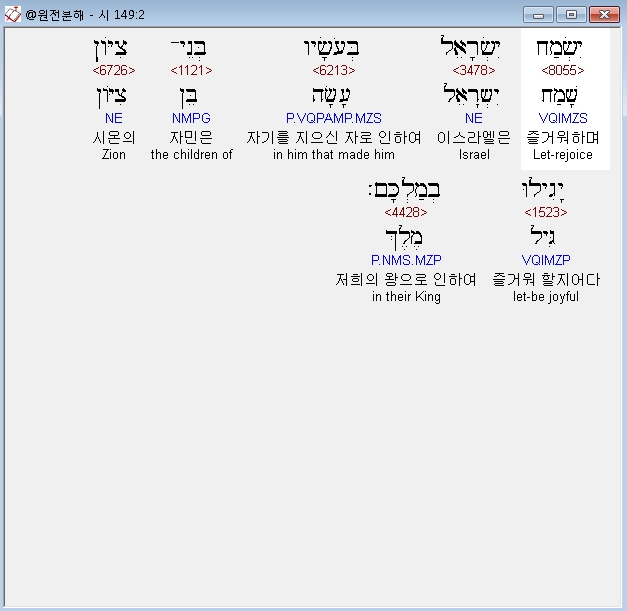 히브리어구약BHS,2 יִשְׂמַח יִשְׂרָאֵל בְּעֹשָׂיו בְּנֵי־צִיֹּון יָגִילוּ בְמַלְכָּם׃