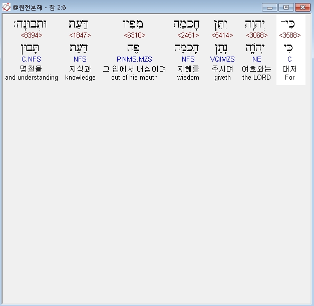 히브리어구약BHS,6 כִּי־יְהוָה יִתֵּן חָכְמָה מִפִּיו דַּעַת וּתְבוּנָה׃