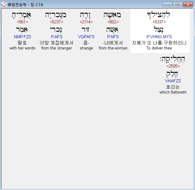 히브리어구약BHS,16 לְהַצִּילְךָ מֵאִשָּׁה זָרָה מִנָּכְרִיָּה אֲמָרֶיהָ הֶחֱלִיקָה׃