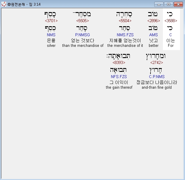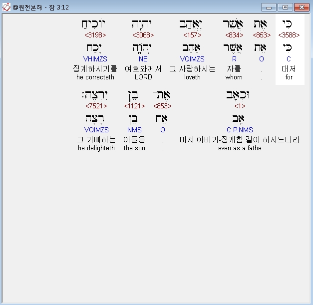 | 히브리어 잠언 2장 전체 원어 원문 성경 공부 주석 강해 설교 해설 해석 (0) | 2020.10.15 |