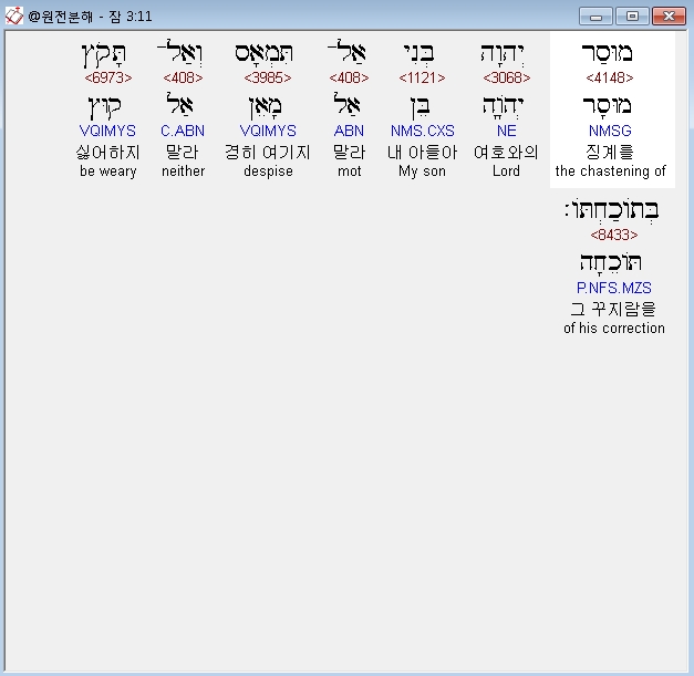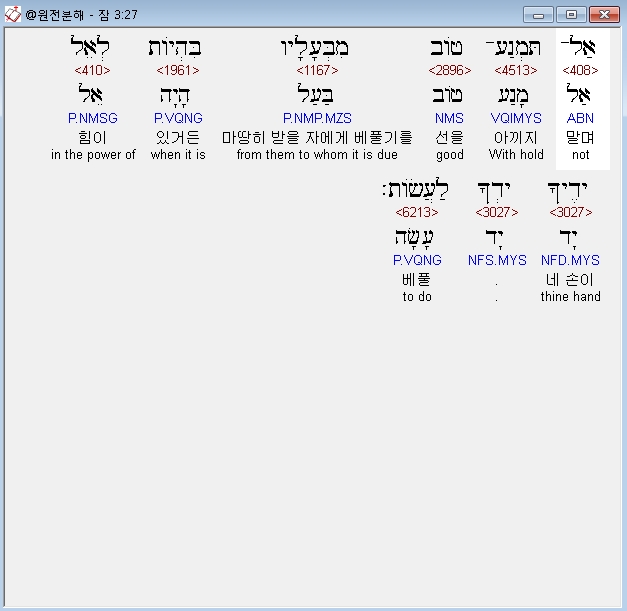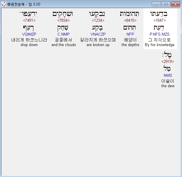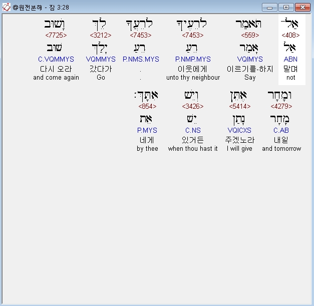 | 히브리어 잠언 4장 전체 원어 원문 성경 공부 주석 강해 설교 해설 해석 (0) | 2020.10.15 |