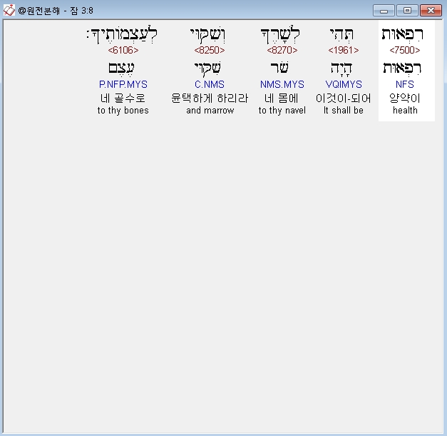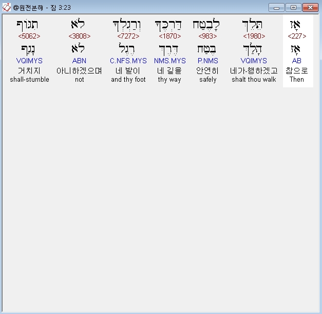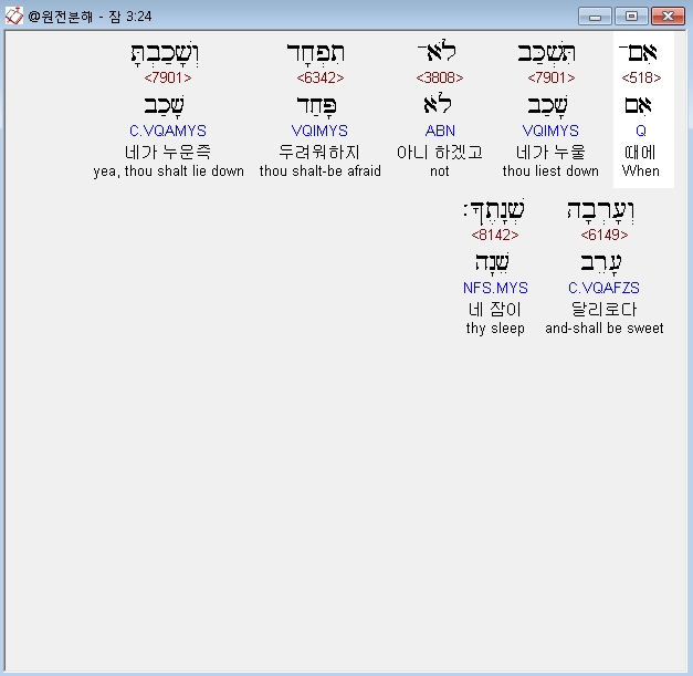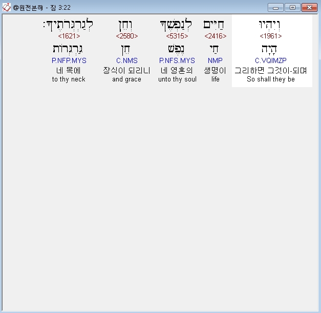 | 히브리어 잠언 5장 전체 원어 원문 성경 공부 주석 강해 설교 해설 해석 (0) | 2020.10.15 |