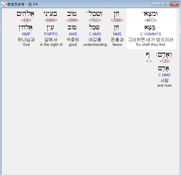 히브리어구약BHS,4 וּמְצָא־חֵן וְשֵׂכֶל־טֹוב בְּעֵינֵי אֱלֹהִים וְאָדָם׃ ף