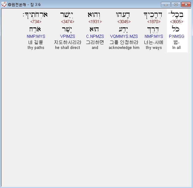 히브리어구약BHS,6 בְּכָל־דְּרָכֶיךָ דָעֵהוּ וְהוּא יְיַשֵּׁר אֹרְחֹתֶיךָ׃