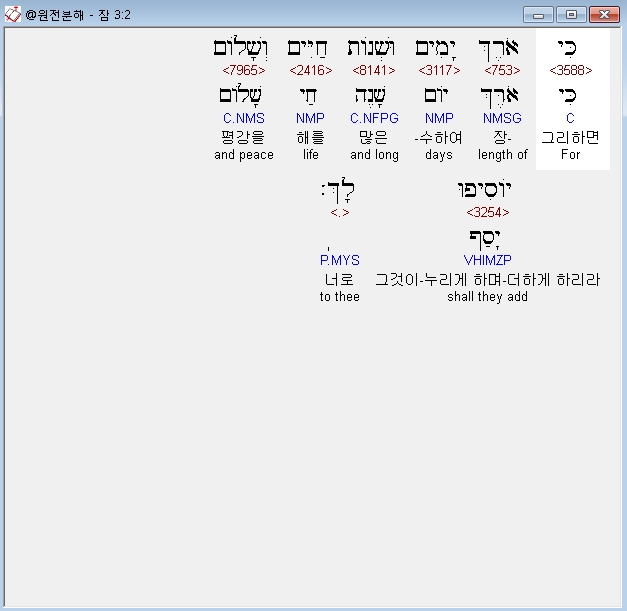 히브리어구약BHS,2 כִּי אֹרֶךְ יָמִים וּשְׁנֹות חַיִּים וְשָׁלֹום יֹוסִיפוּ לָךְ׃