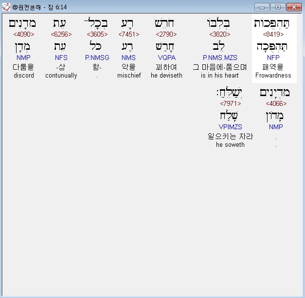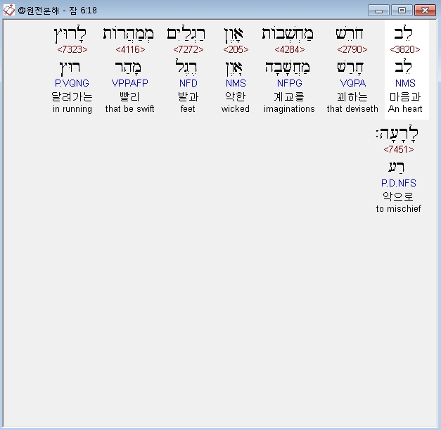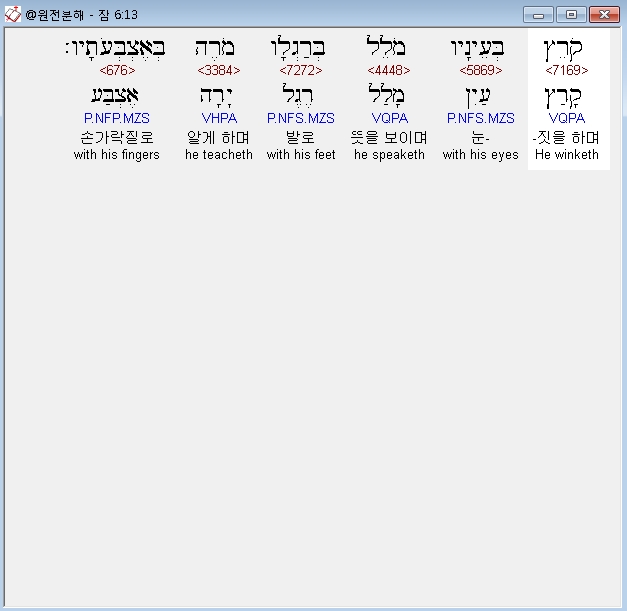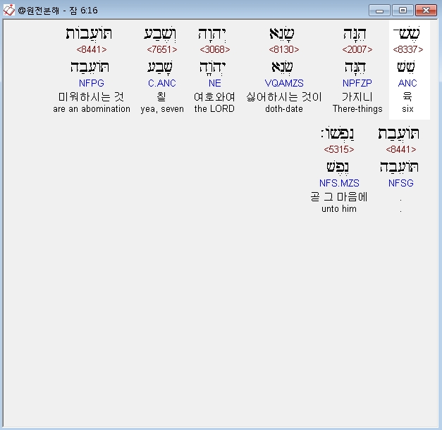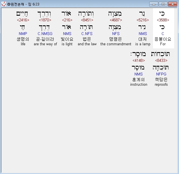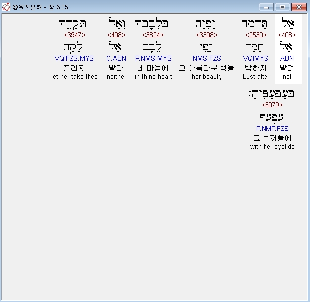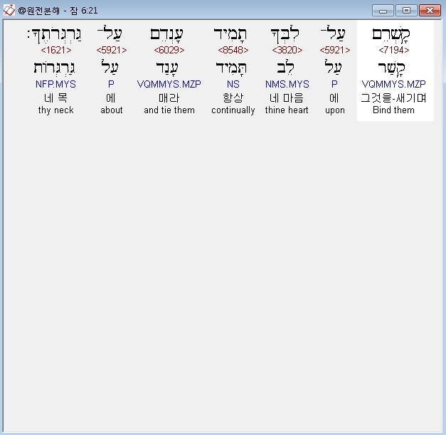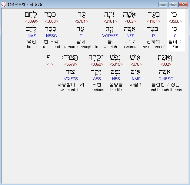 | 히브리어 잠언 7장 전체 원어 원문 성경 공부 주석 강해 설교 해설 해석 (0) | 2020.10.15 |