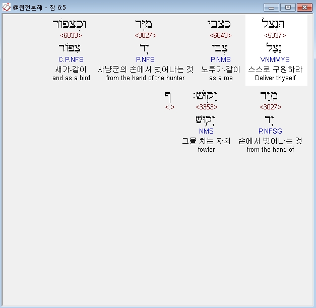 히브리어구약BHS,5 הִנָּצֵל כִּצְבִי מִיָּד וּכְצִפֹּור מִיַּד יָקוּשׁ׃ ף