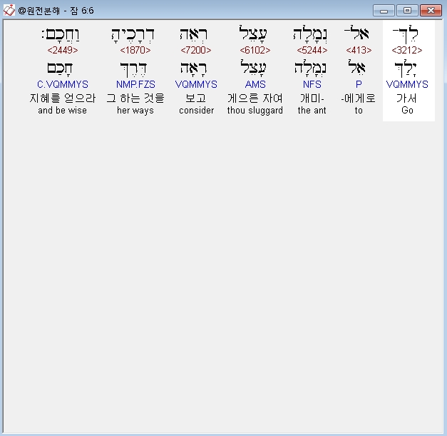 히브리어구약BHS,6 לֵךְ־אֶל־נְמָלָה עָצֵל רְאֵה דְרָכֶיהָ וַחֲכָם׃