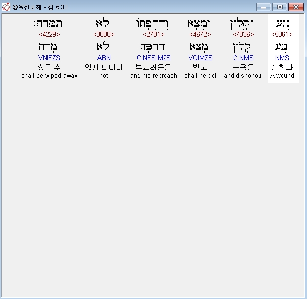 히브리어구약BHS,33 נֶגַע־וְקָלֹון יִמְצָא וְחֶרְפָּתֹו לֹא תִמָּחֶה׃