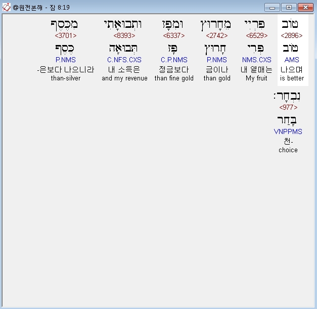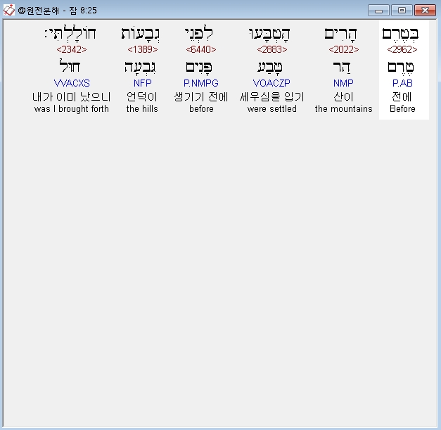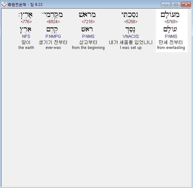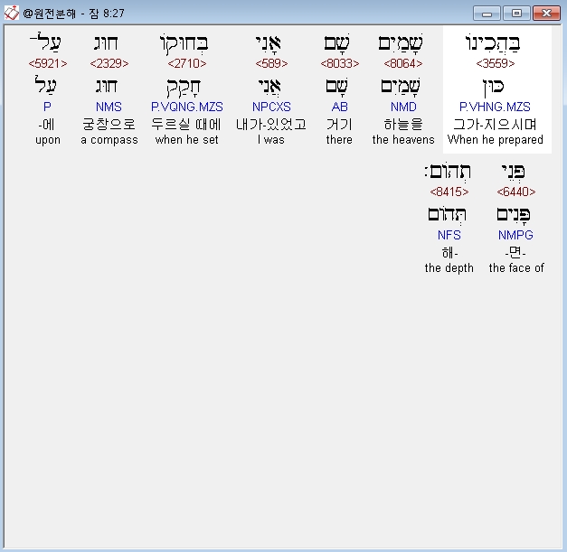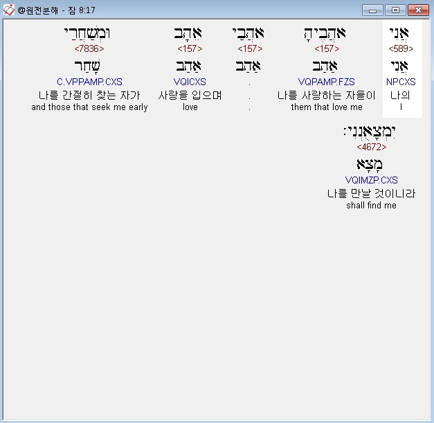 | 히브리어 잠언 5장 전체 원어 원문 성경 공부 주석 강해 설교 해설 해석 (0) | 2020.10.15 |