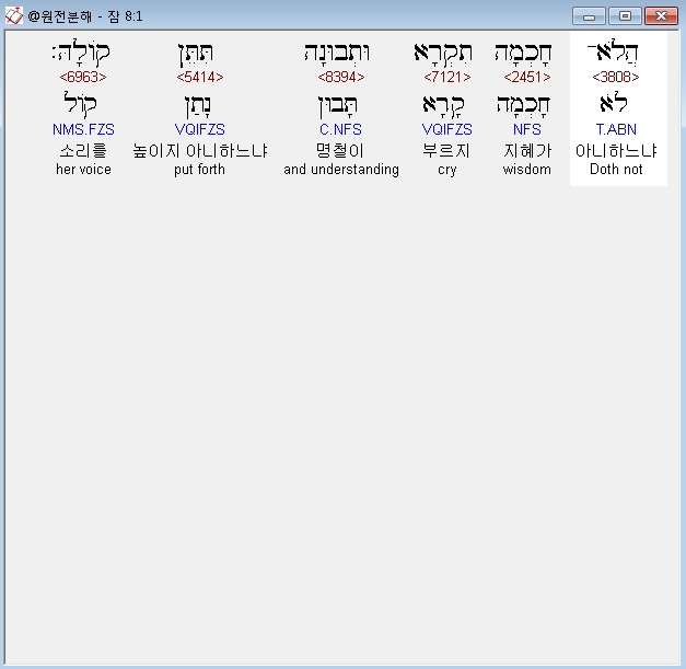 히브리어구약BHS,1 הֲלֹא־חָכְמָה תִקְרָא וּתְבוּנָה תִּתֵּן קֹולָהּ׃