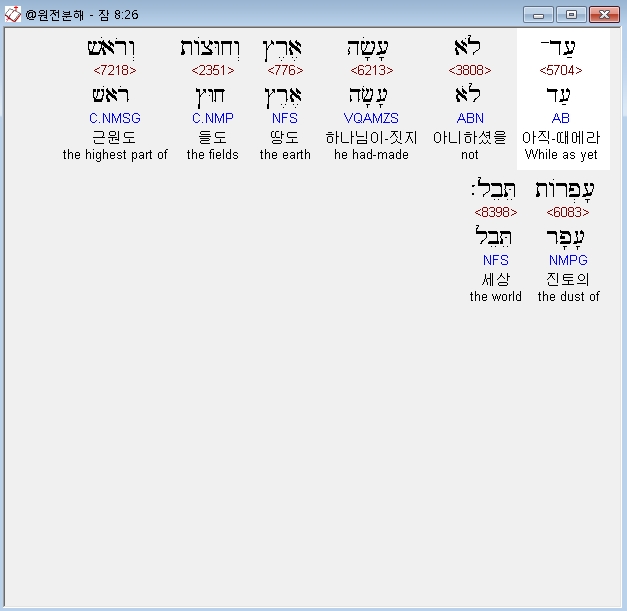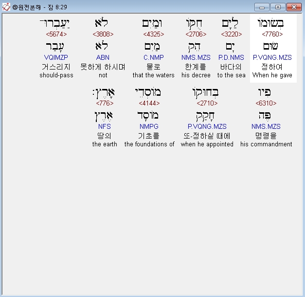 | 히브리어 잠언 6장 전체 원어 원문 성경 공부 주석 강해 설교 해설 해석 (0) | 2020.10.15 |