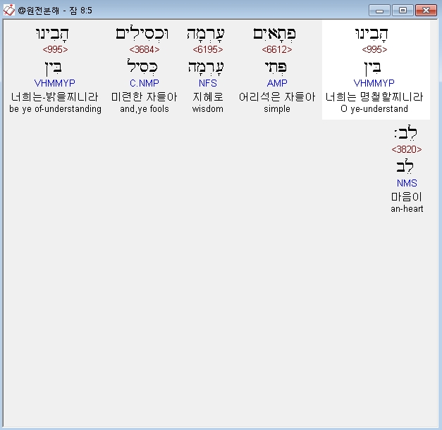 히브리어구약BHS,5 הָבִינוּ פְתָאיִם עָרְמָה וּכְסִילִים הָבִינוּ לֵב׃