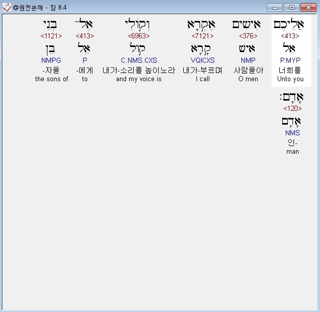 히브리어구약BHS,4 אֲלֵיכֶם אִישִׁים אֶקְרָא וְקֹולִי אֶל־בְּנֵי אָדָם׃