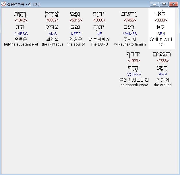 히브리어구약BHS,3 לֹא־יַרְעִיב יְהוָה נֶפֶשׁ צַדִּיק וְהַוַּת רְשָׁעִים יֶהְדֹּף׃