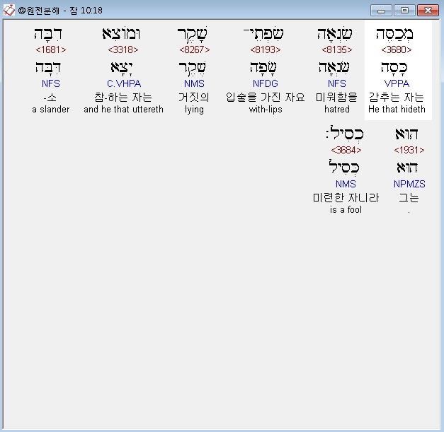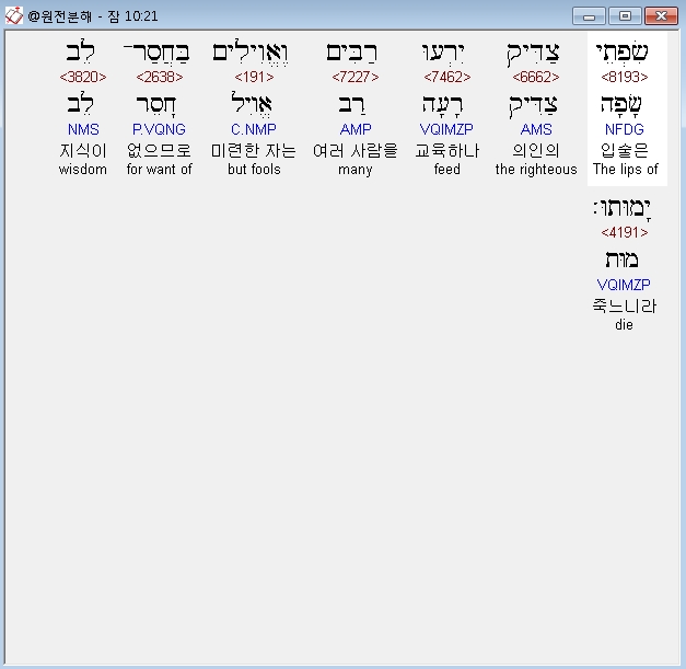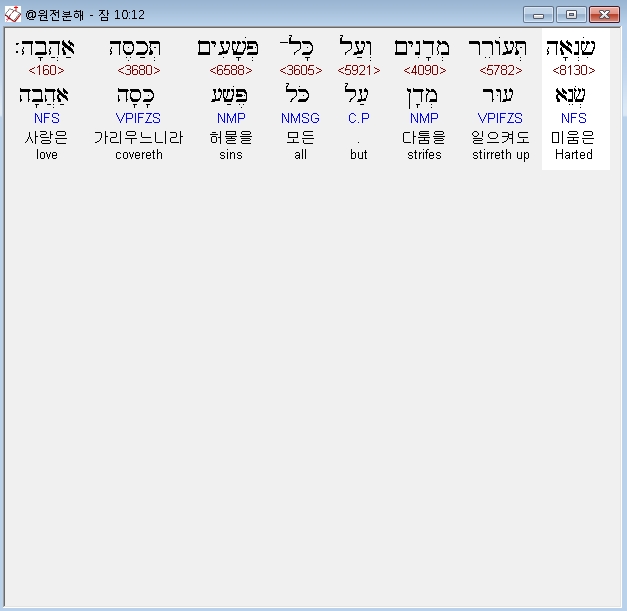 | 히브리어 잠언 12장 전체 원어 원문 성경 공부 주석 강해 설교 해설 해석 (0) | 2020.10.15 |