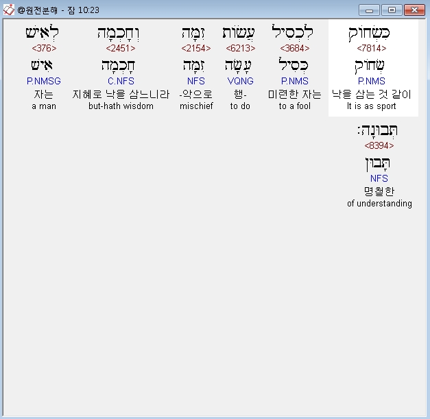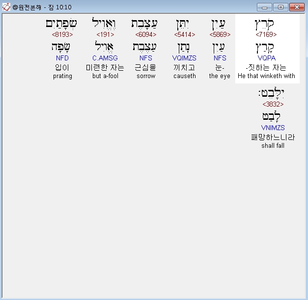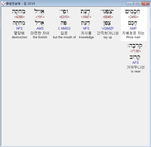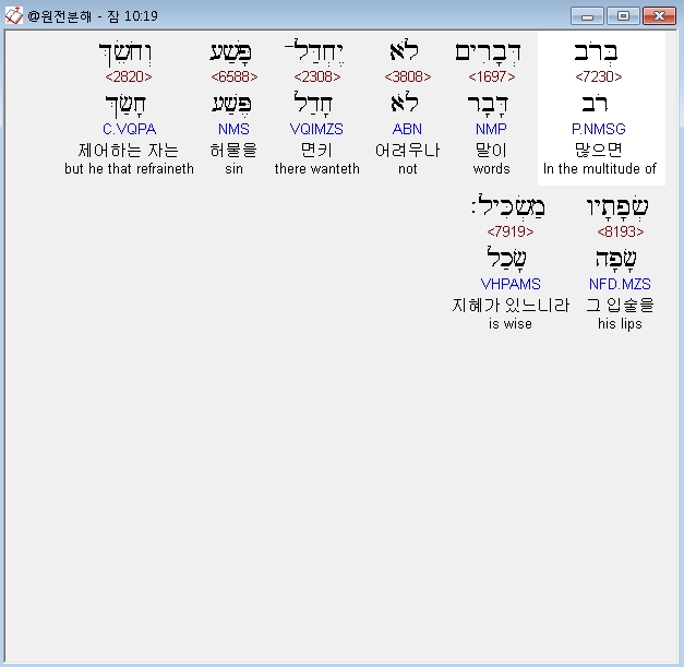 | 히브리어 잠언 7장 전체 원어 원문 성경 공부 주석 강해 설교 해설 해석 (0) | 2020.10.15 |