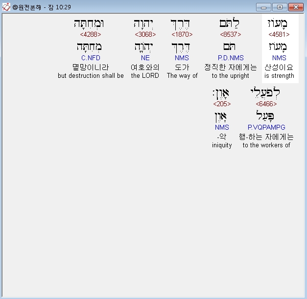 히브리어구약BHS,29 מָעֹוז לַתֹּם דֶּרֶךְ יְהוָה וּמְחִתָּה לְפֹעֲלֵי אָוֶן׃
