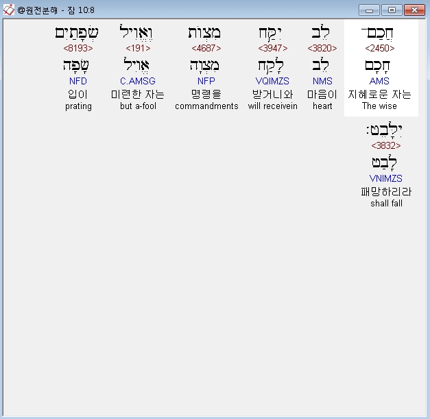 | 히브리어 잠언 8장 전체 원어 원문 성경 공부 주석 강해 설교 해설 해석 (0) | 2020.10.15 |