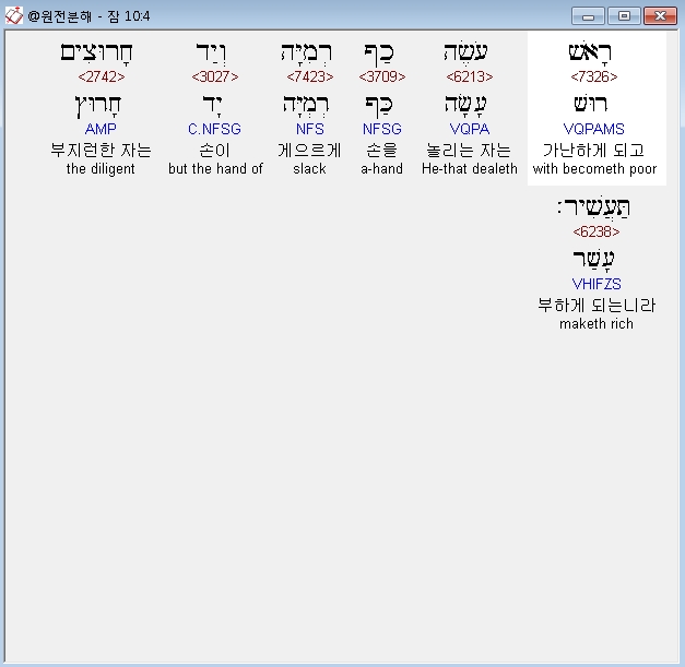 히브리어구약BHS,4 רָאשׁ עֹשֶׂה כַף־רְמִיָּה וְיַד חָרוּצִים תַּעֲשִׁיר׃