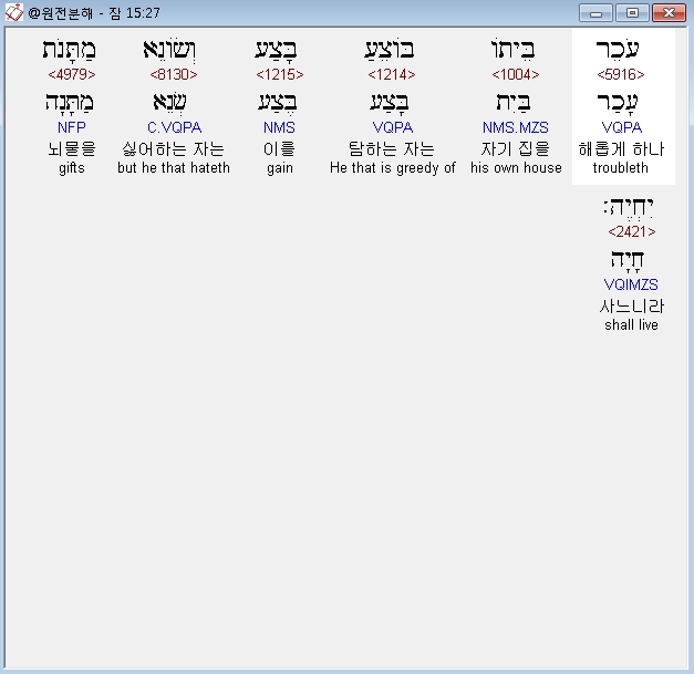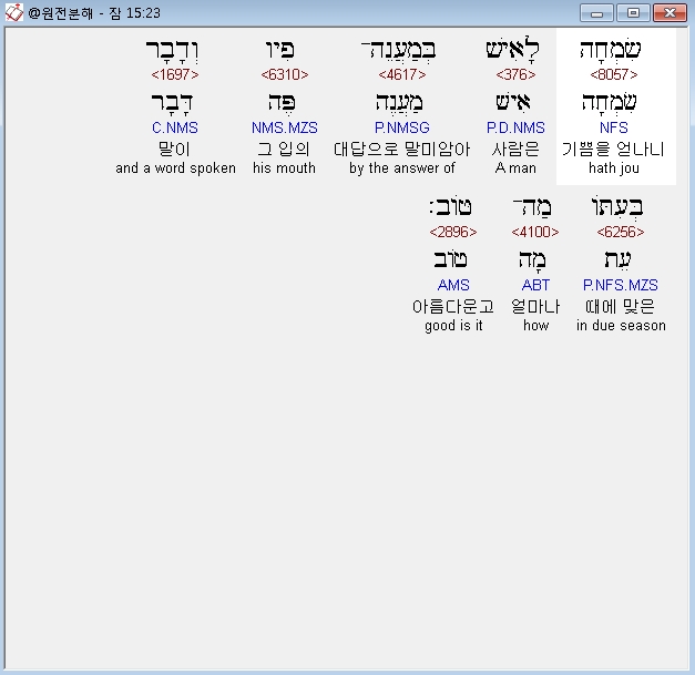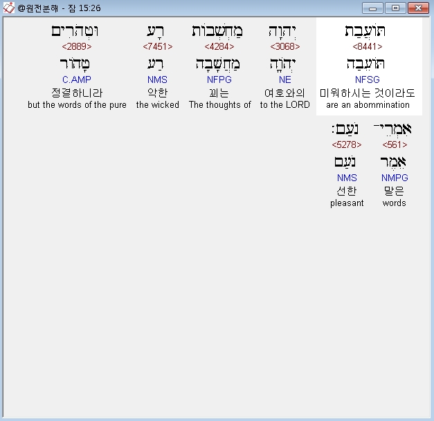 | 히브리어 잠언 12장 전체 원어 원문 성경 공부 주석 강해 설교 해설 해석 (0) | 2020.10.15 |