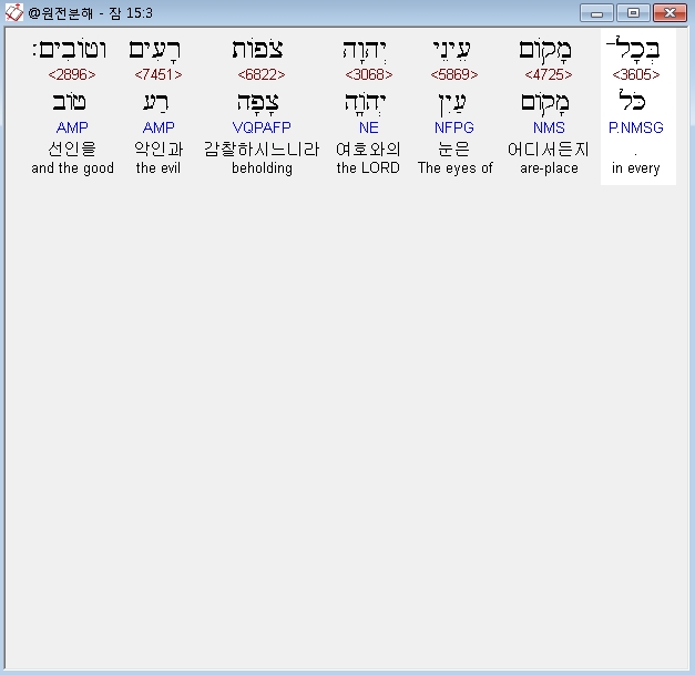 히브리어구약BHS,3 בְּכָל־מָקֹום עֵינֵי יְהוָה צֹפֹות רָעִים וְטֹובִים׃