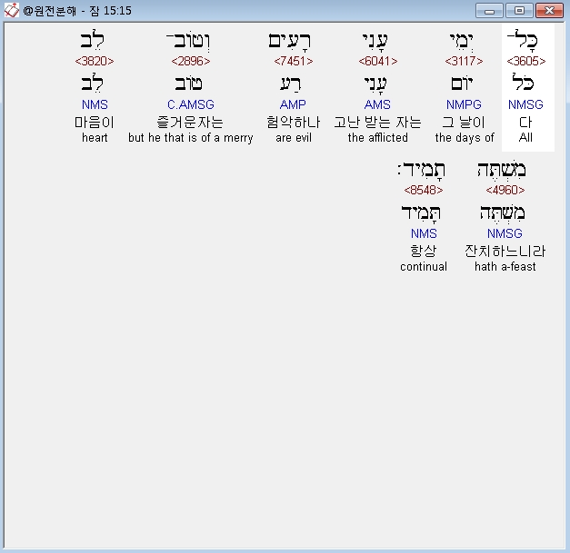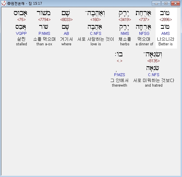 | 히브리어 잠언 17장 전체 원어 원문 성경 공부 주석 강해 설교 해설 해석 (0) | 2020.10.15 |