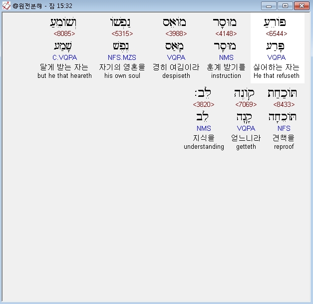 히브리어구약BHS,32 פֹּורֵעַ מוּסָר מֹואֵס נַפְשֹׁו וְשֹׁומֵעַ תֹּוכַחַת קֹונֶה לֵּב׃